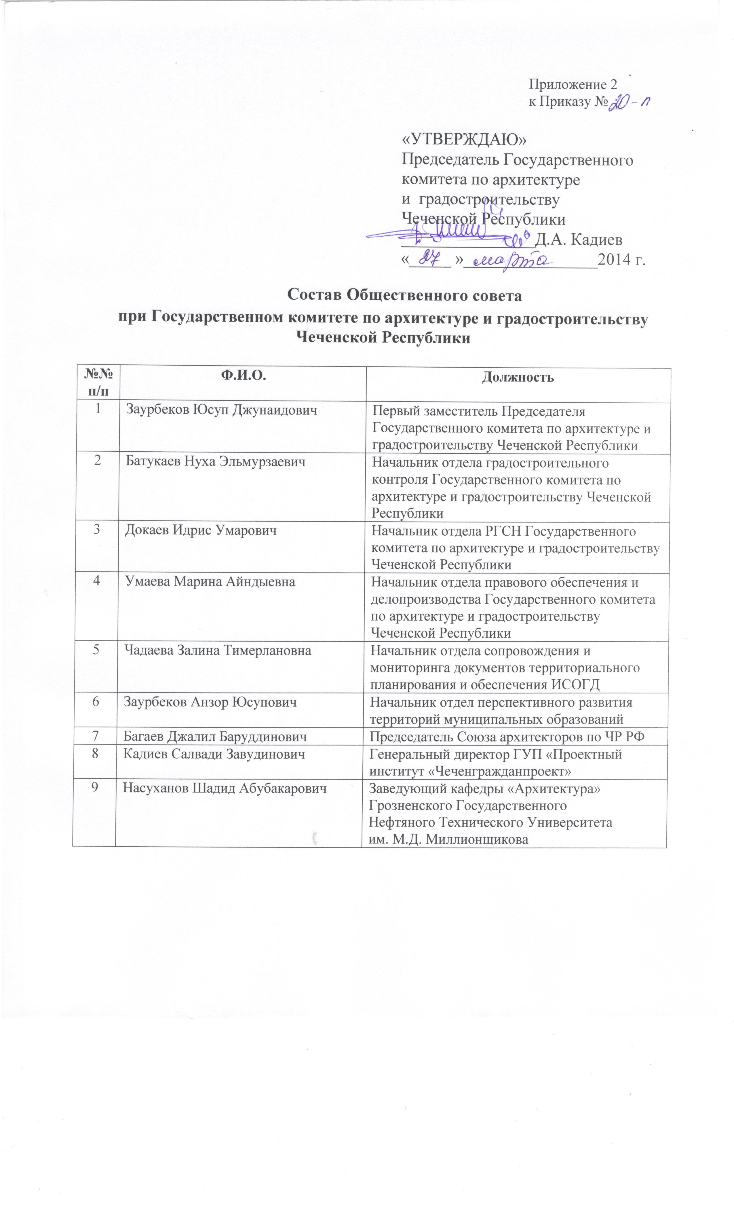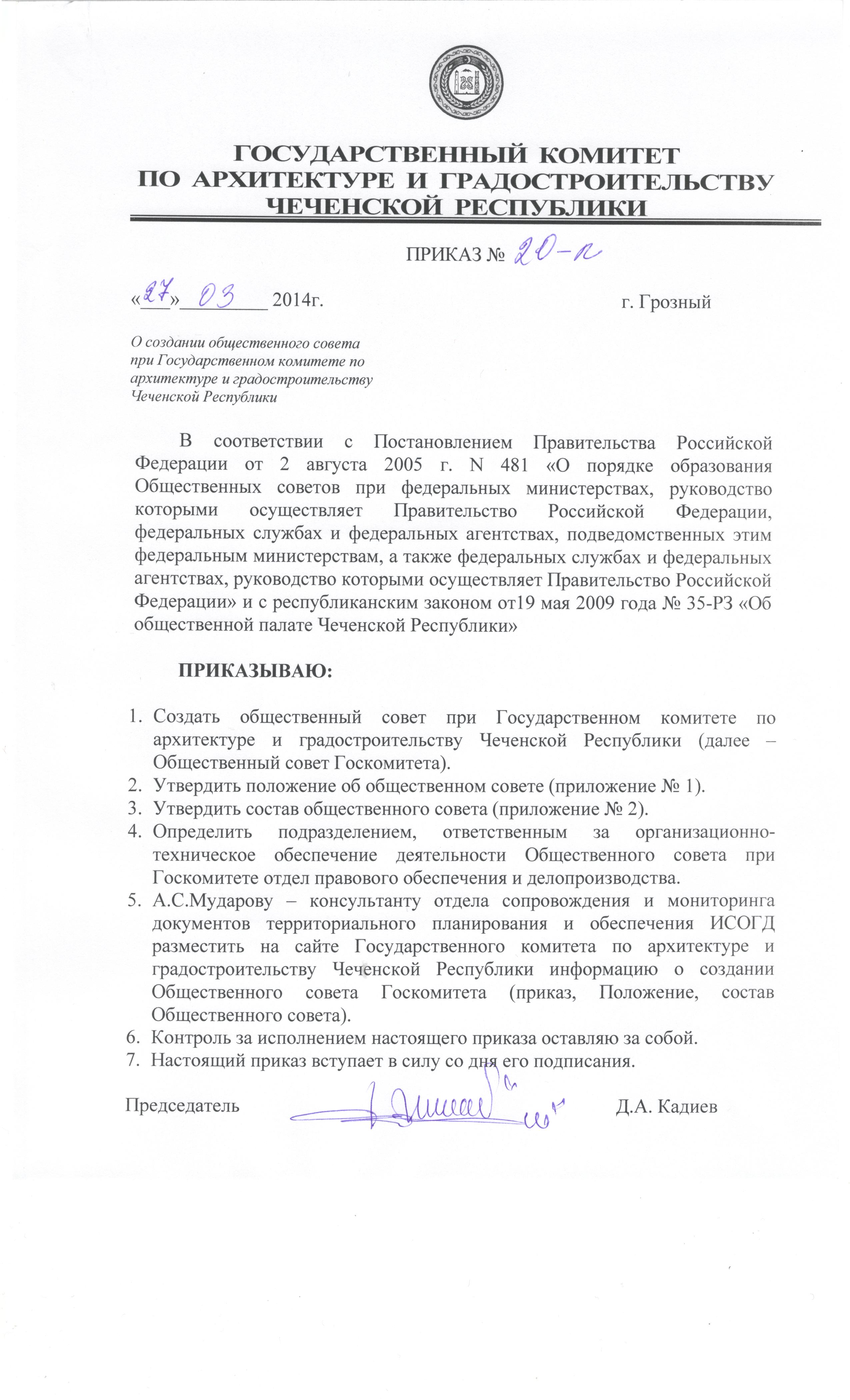Приказ от 27.03.2014г. №20-п "О создании общественного совета при государственном комитете по архитектуре и градостроительству ЧР"